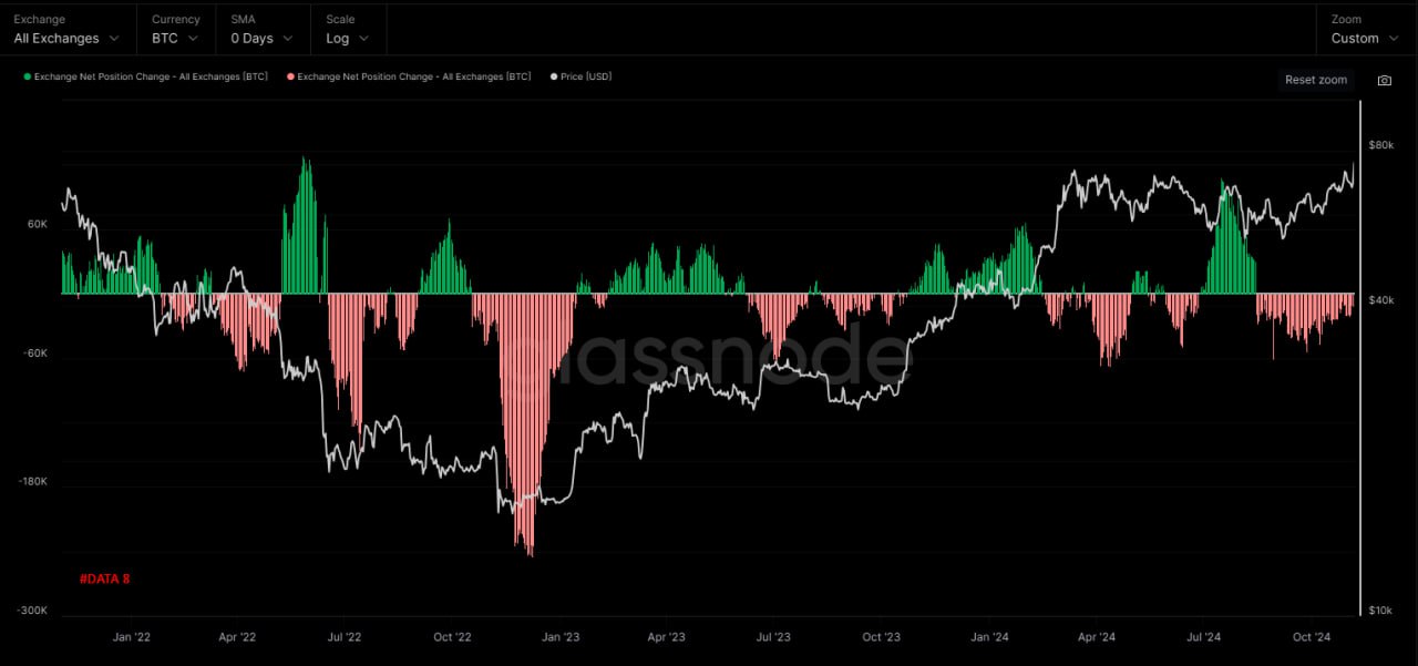 (8) Exchange net position change: Tỷ lệ nạp rút coin trên sàn