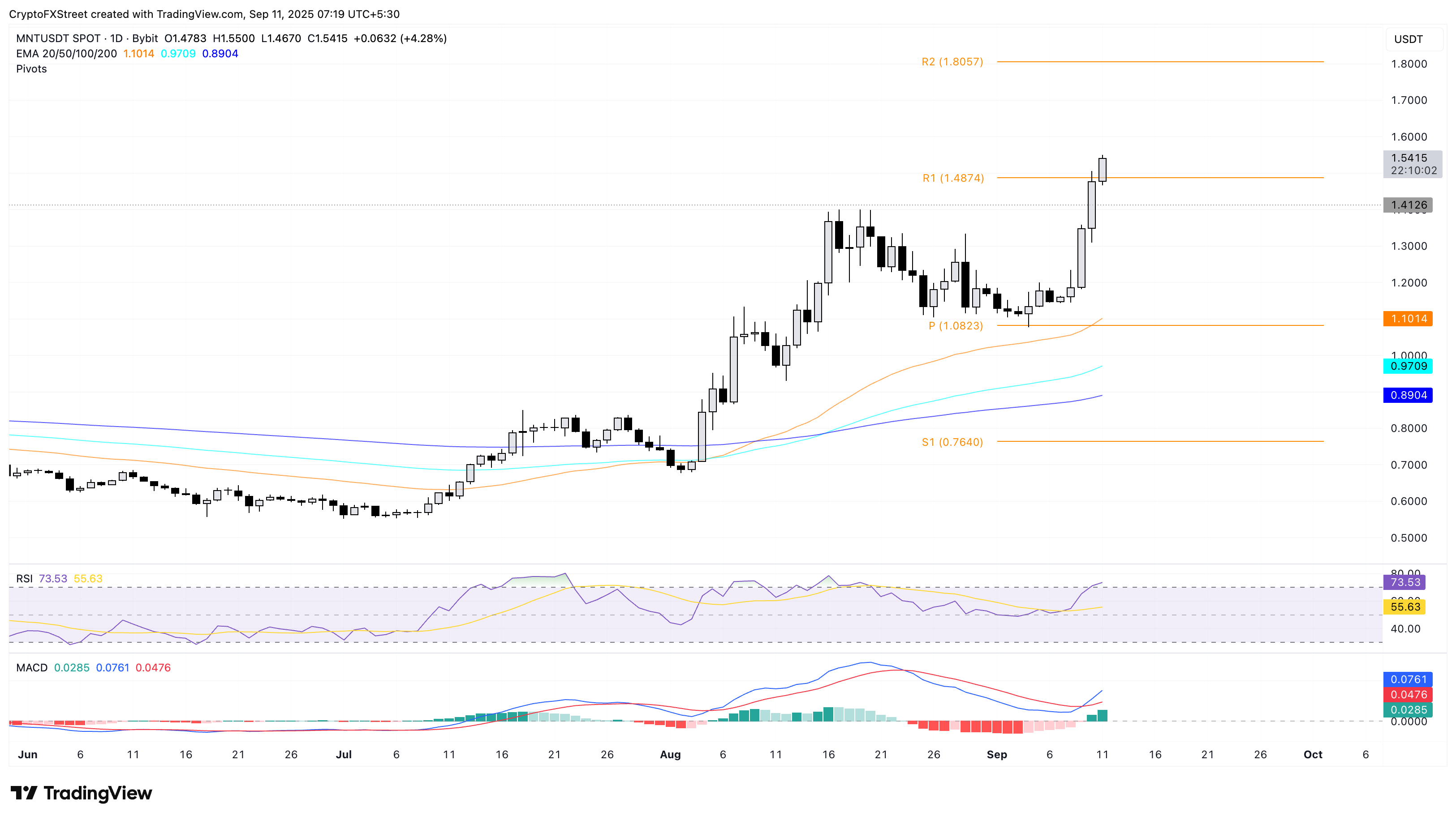 MNT tiếp tục tăng mạnh sau khi được bổ sung 21 cặp giao dịch mới trên Bybit.