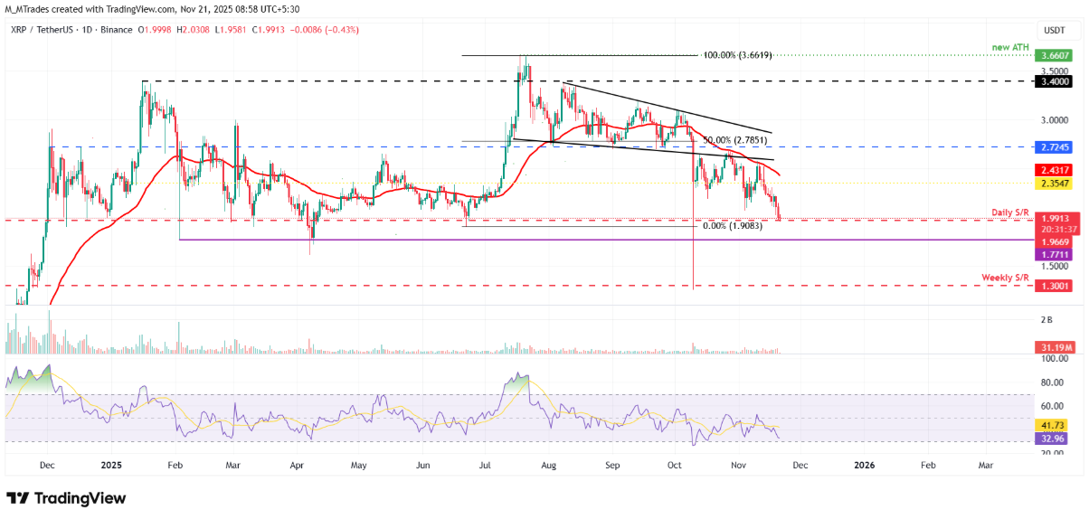 Hiện tại, XRP đang giao dịch dưới 1,99 USD, cho thấy xu hướng giảm vẫn chiếm ưu thế.