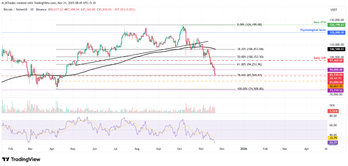 Tại thời điểm cập nhật, BTC giao dịch quanh 85.900 USD, cho thấy lực bán vẫn chiếm ưu thế.