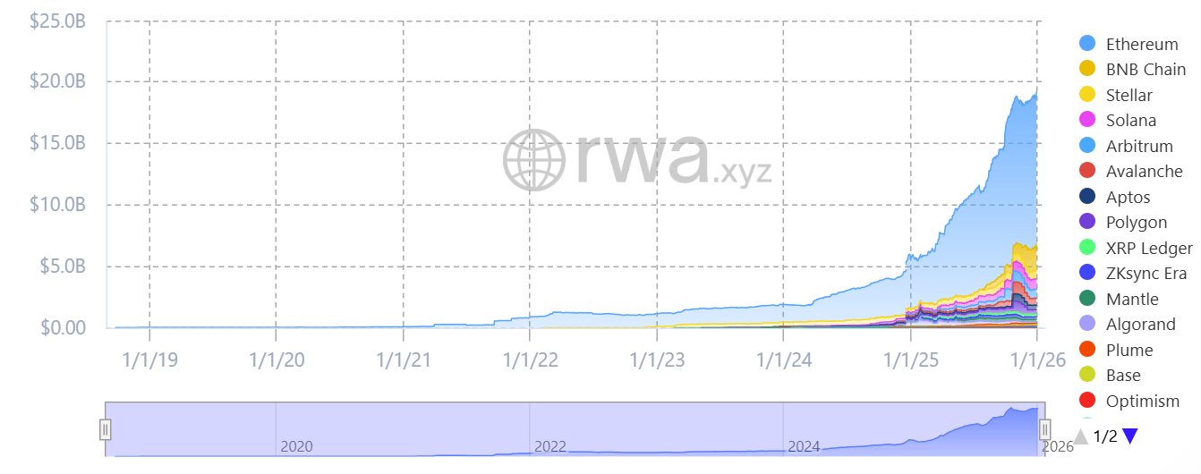 Ethereum hiện là mạng lưới dẫn đầu trong lĩnh vực token hóa RWA, chiếm thị phần lớn nhất về vốn hóa RWA on-chain. Các nhà nghiên cứu tại RedStone đánh giá Ethereum là “tiêu chuẩn tổ chức” cho các sáng kiến token hóa, nhờ vào mức độ bảo mật cao, thanh khoản sâu và hạ tầng đã được kiểm chứng qua thời gian.
