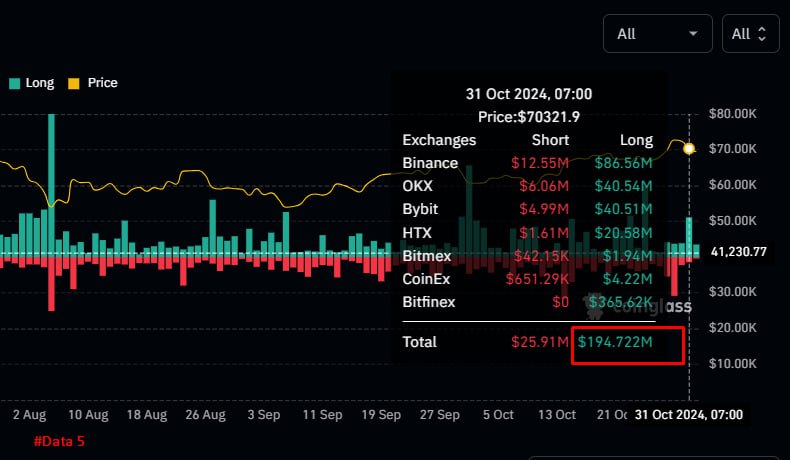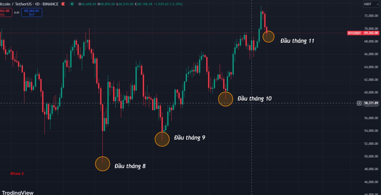 Đầu tháng 11, tiếp tục ảnh hưởng từ nhịp điều chỉnh đến từ thị trường chứng khoán Hoa Kỳ (trong 24h qua ~ gần 1000 TỶ USD bốc hơi) , BTC chỉnh nhẹ về vùng dưới 70K ( âm nhẹ 3000 giá )