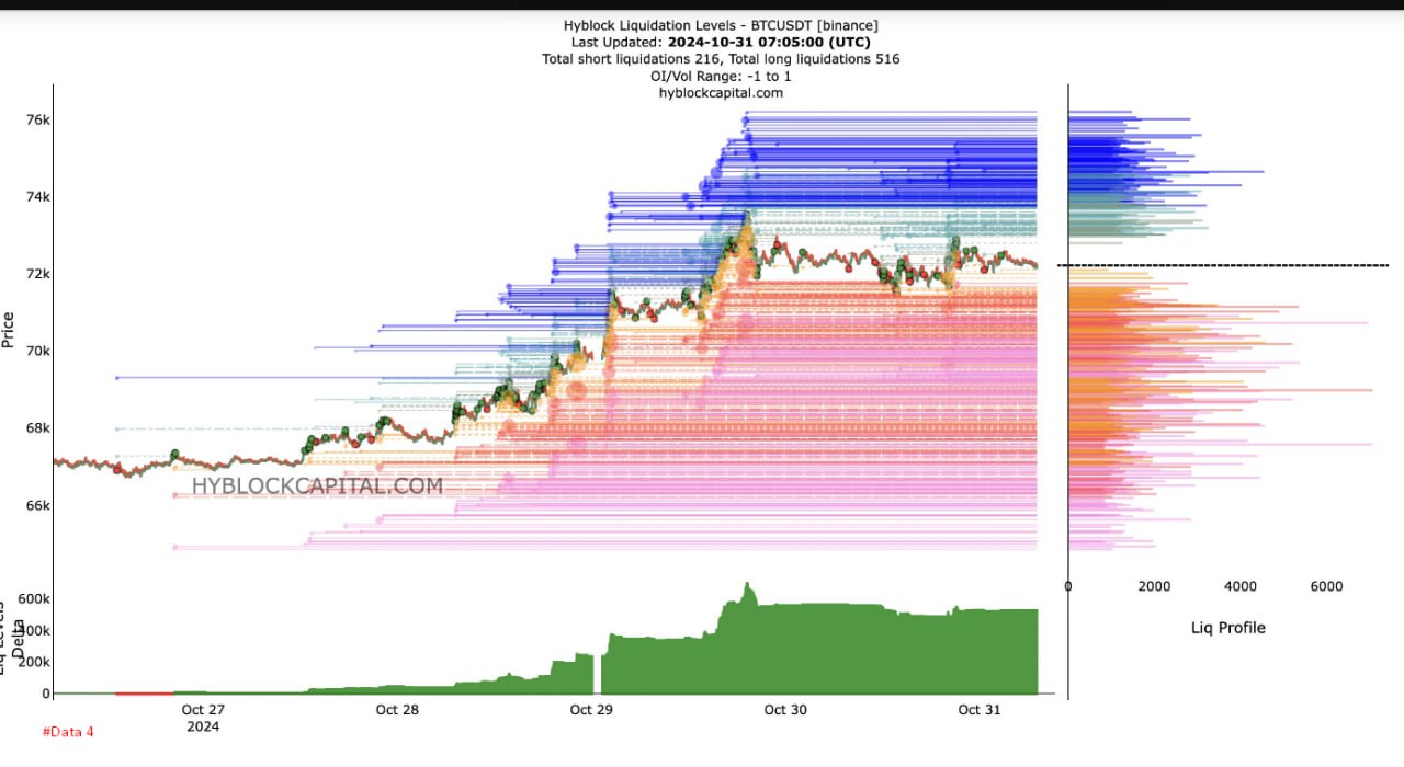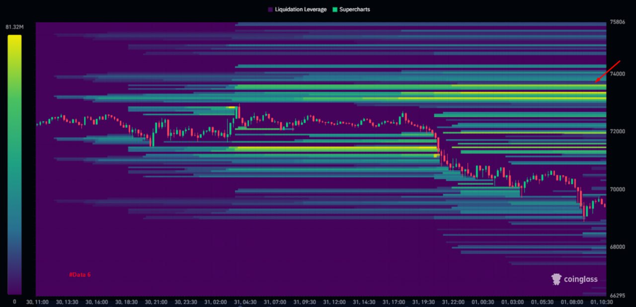 Sau khi quét thanh khoản, những vùng giá nóng high liquid đang ở vùng đỉnh cũ ~73K USD. (#Data 6)