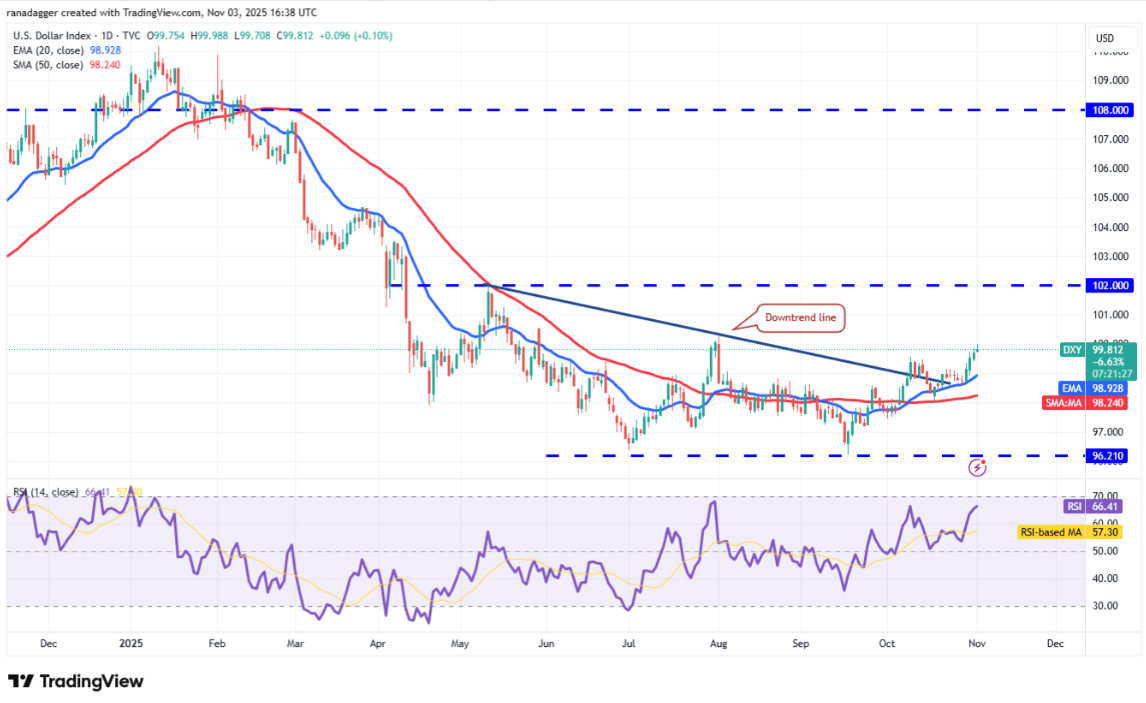 Nếu duy trì trên 99, DXY có thể tăng về 100,5–102, gây áp lực lên vàng và crypto.