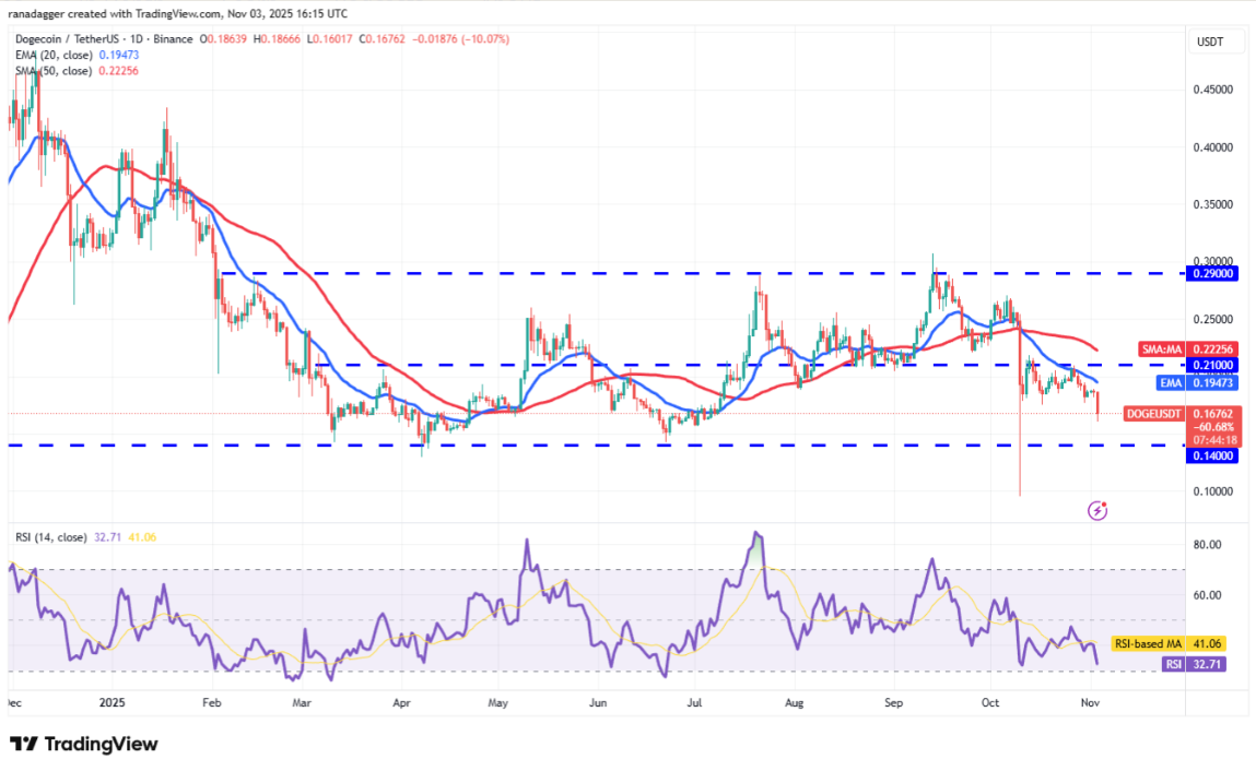 Hỗ trợ 0,14 USD vẫn đang được giữ vững; thủng vùng này giá có thể rơi sâu về 0,10 USD.