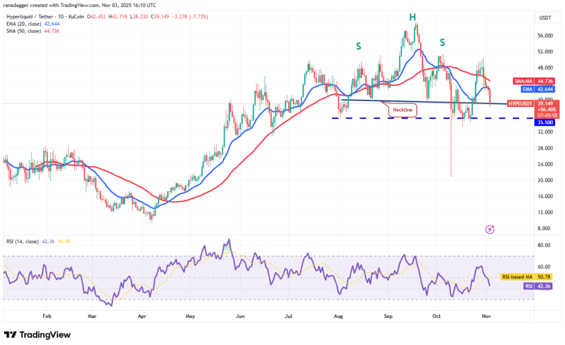 Giảm dưới EMA20 (42,7 USD) và đang tiến về hỗ trợ 35,5 USD.