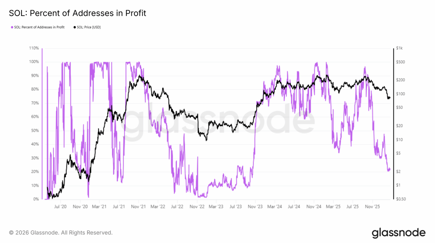 Lần gần nhất tín hiệu này xuất hiện là vào năm 2022 — thời điểm sau đó SOL đã lao dốc tới 95%, nhấn mạnh mức độ rủi ro mà thị trường hiện vẫn đang phải đối mặt.